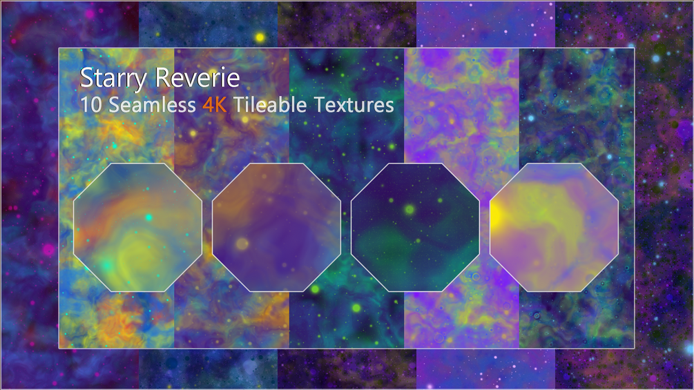 Starry Reverie is a profound, independent visual chapter, drawing inspiration from endless contemplations of the vast starry sky during midnight strolls. This collection captures the fleeting moments where stardust flickers and illusory shadows interweave, translating unreachable galactic hues into 10 high-resolution textures with immense visual impact. Each asset is designed to showcase the chromatic tension of cosmic scales—from deep, mysterious dark matter tones to the brilliant eruptions of nebular light. These 4K seamless patterns provide a dazzling visual foundation for any project seeking sci-fi aesthetics, dreamlike atmospheres, or surrealist styles.